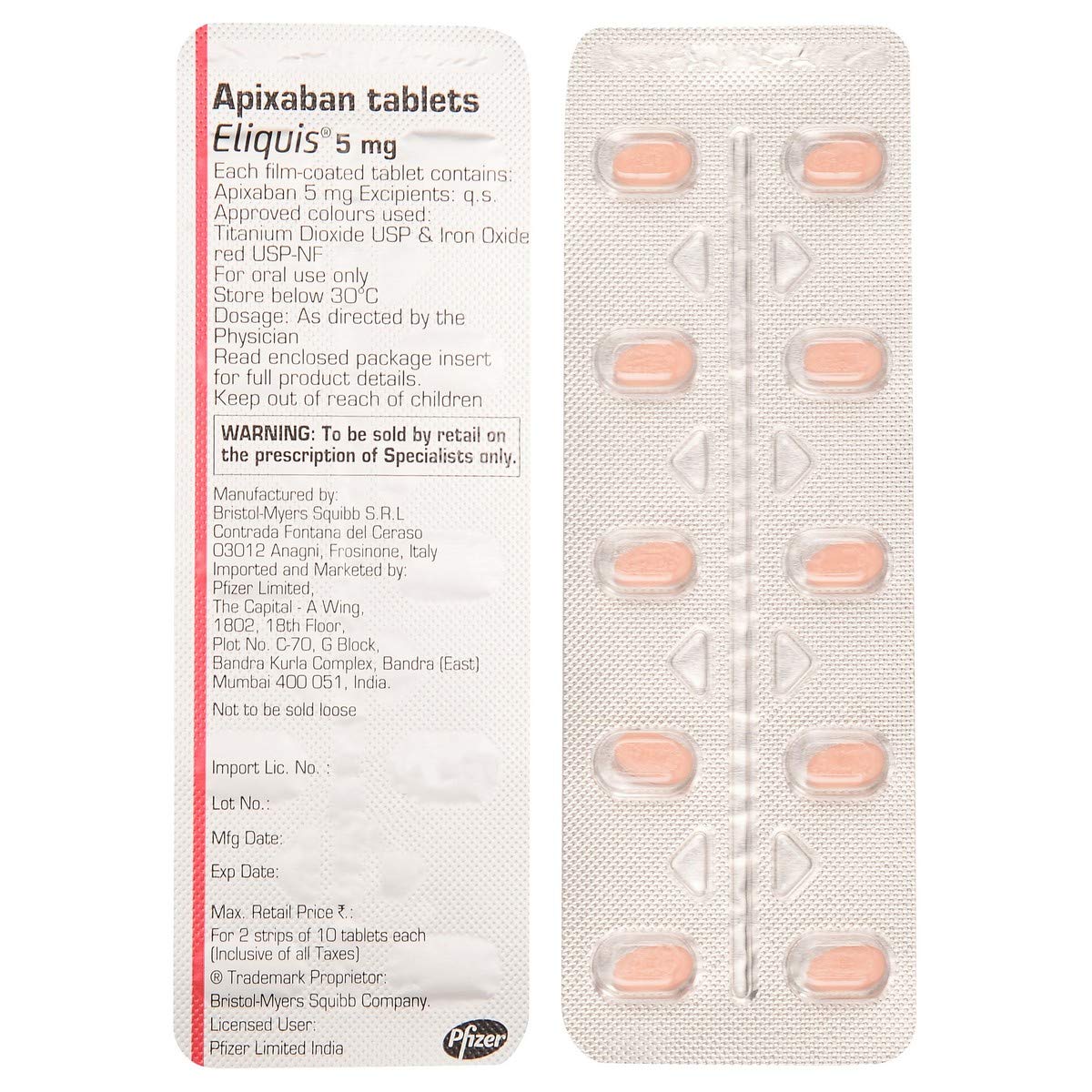 - Zur Behandlung der tiefen Venenthrombose wird eine Dosis von 10 mg zweimal täglich für eine Woche verschrieben. Dann wird die Dosierung auf 5 mg zweimal täglich für 3 Monate angepasst. Eine Dosis von 2,5 mg zweimal täglich wird zur Vorbeugung von Blutgerinnseln verwendet;